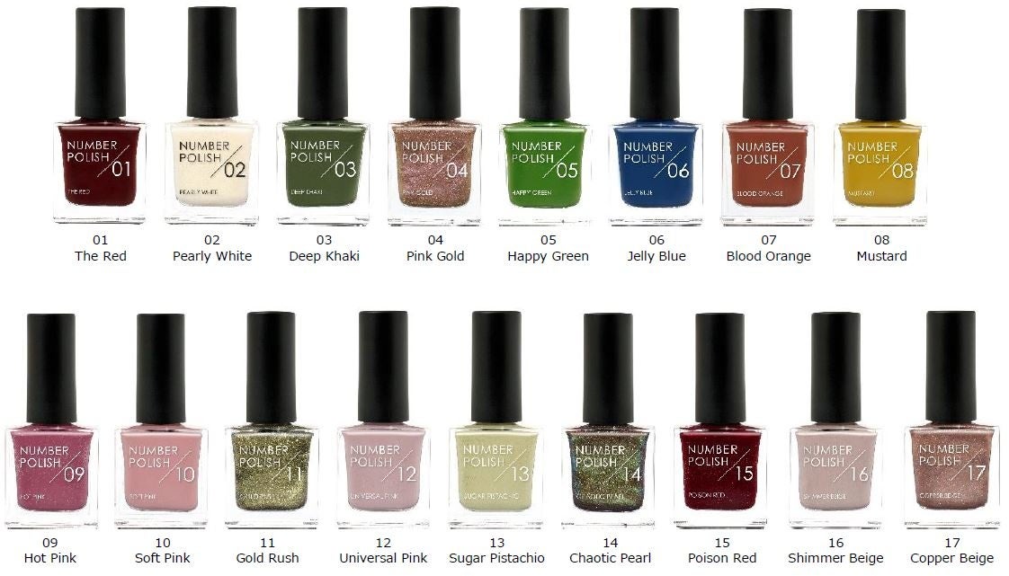 ナンバーポリッシュ(17色)8ml ¥1,000(税込¥1,100)
