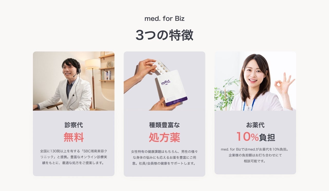 アイメッド社が運営するオンライン診療サービス「med. powered by Rakuten(メッド パワード バイ ラクテン)」を会員や企業組織の福利厚生として提供する新しいサービスです。