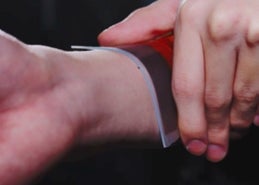 薄く軽量であり、柔軟性を持つセンサーです。首・腕・膝などの曲面にもフィットし、貼り付けたまま長時間のモニタリングをすることが可能です。