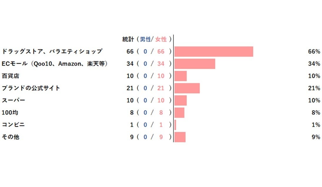 化粧品の購入場所はドラッグストアやバラエティショップが多数派でした。