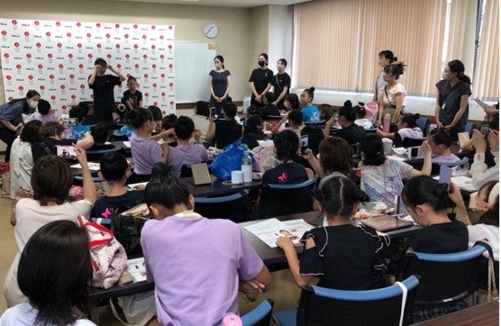 選手が実際に使用しているアイテムを使ってメーク体験。保護者の方々からは熱心な質問もいただきます。