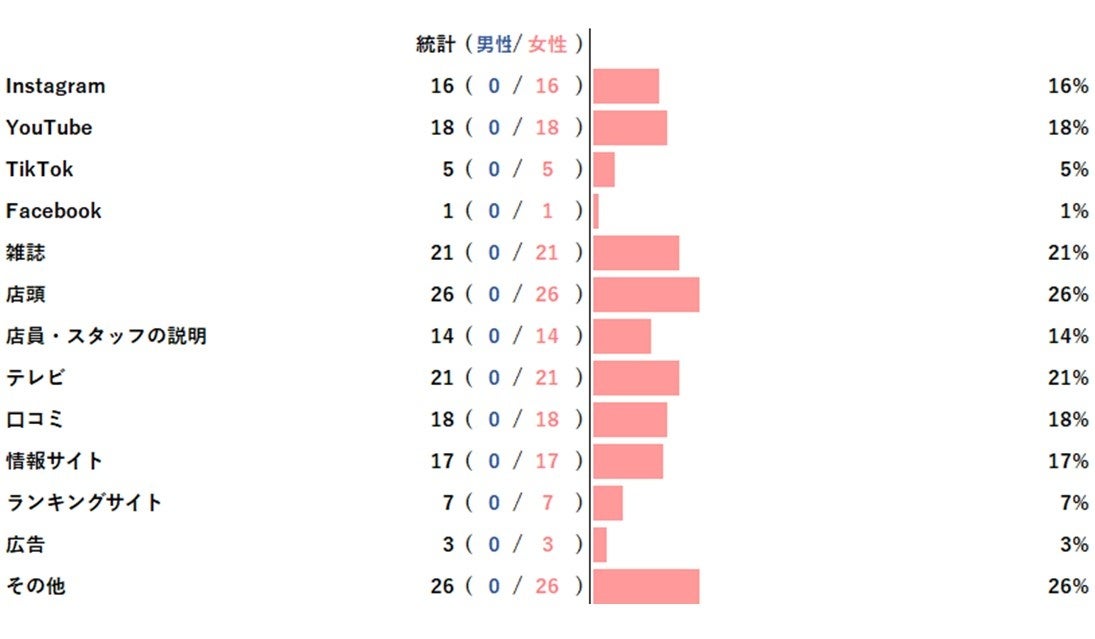 次に 「美容についての情報源はなに?」とアンケート調査した結果、1位は『店頭』でした。