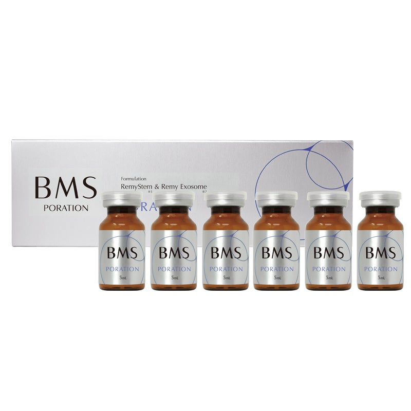 新たに商品化された『BMS ポレーション』はクリニックでの需要を踏まえ、ヒト幹細胞培養上清液にイデベノンやアルジルリンなど、即効性の美容成分を組み合わせるとともに、エレクトロポレーションに適したセラミドを贅沢に5 種類も配合している。濃縮エクソソームも添加されており、従来の『BMS』シリーズの良さも継承している。