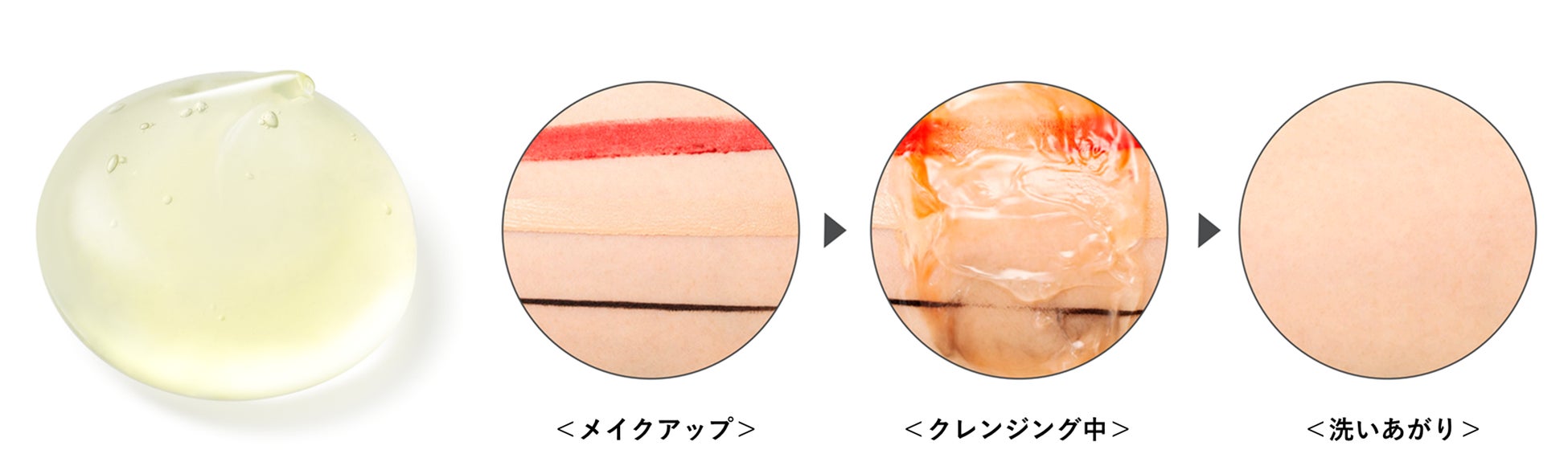 「クレンジング時の摩擦による肌負担が気になる」というお客さまの声にお応えするため、肌にのせてもへたらず、濃密な弾力が続くオイルフリーのジェルを研究開発。摩擦レスで肌をこすらず、優しくメイクや汚れをオフしながらするんと簡単に洗い流せます。
