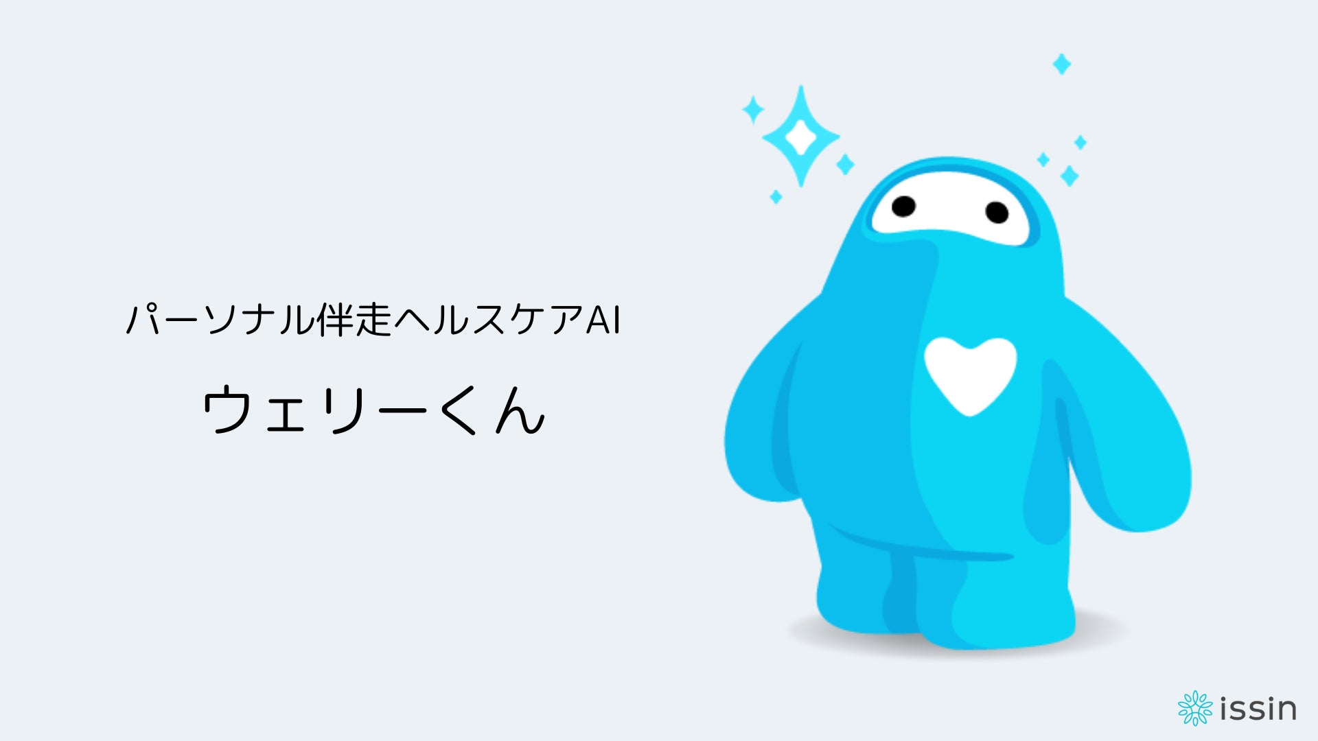 「ウェリーくん」は、自分より自分の健康を気にかけてくれ、共感し、伴走し、励ます役割を果たします。また、ユーザーの目標に応じて必要な知識を提供し、生き生きと輝く毎日を実現するためのサポートを行います。ウェリーくんは、Issinが提供する今後の複数のサービスに登場予定です。