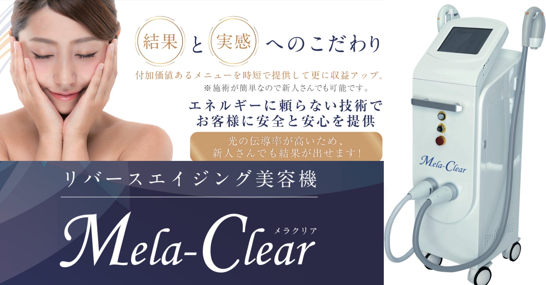 これからの美容は男性も女性もなく、子供から大人、高齢者までありとあらゆるニーズに対応したものになっていくと予想されます。個人サロンはもちろん今まで美容機を購入する事がなかったオールハンドに特化したサロンにもMela-Clear(メラクリア)を使った施術を導入していただくことで、たくさんのお客様が安価に安全にクオリティの高い美容施術を利用するようになっていくのではないでしょうか。