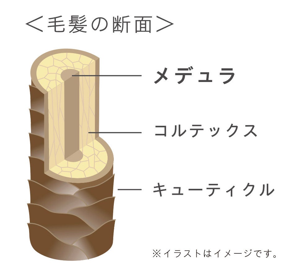 髪の芯であるメデュラまでケア成分*17を届ける、独自の高浸透技術「ヘアメデュラケア」を採用。