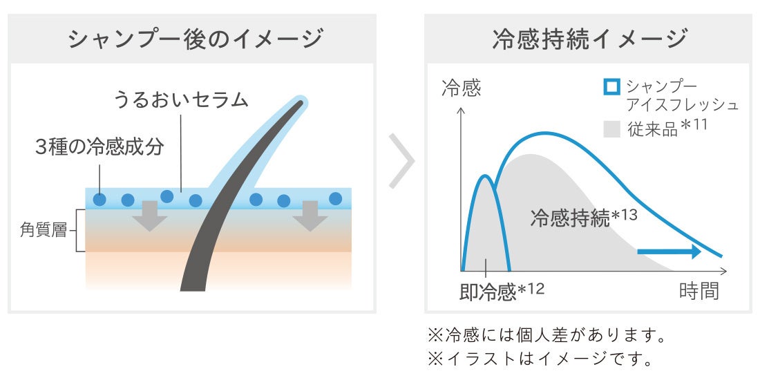 また、3種の冷感成分*10が頭皮上に留まることで、すすぎ後も爽快感が長持ちします。