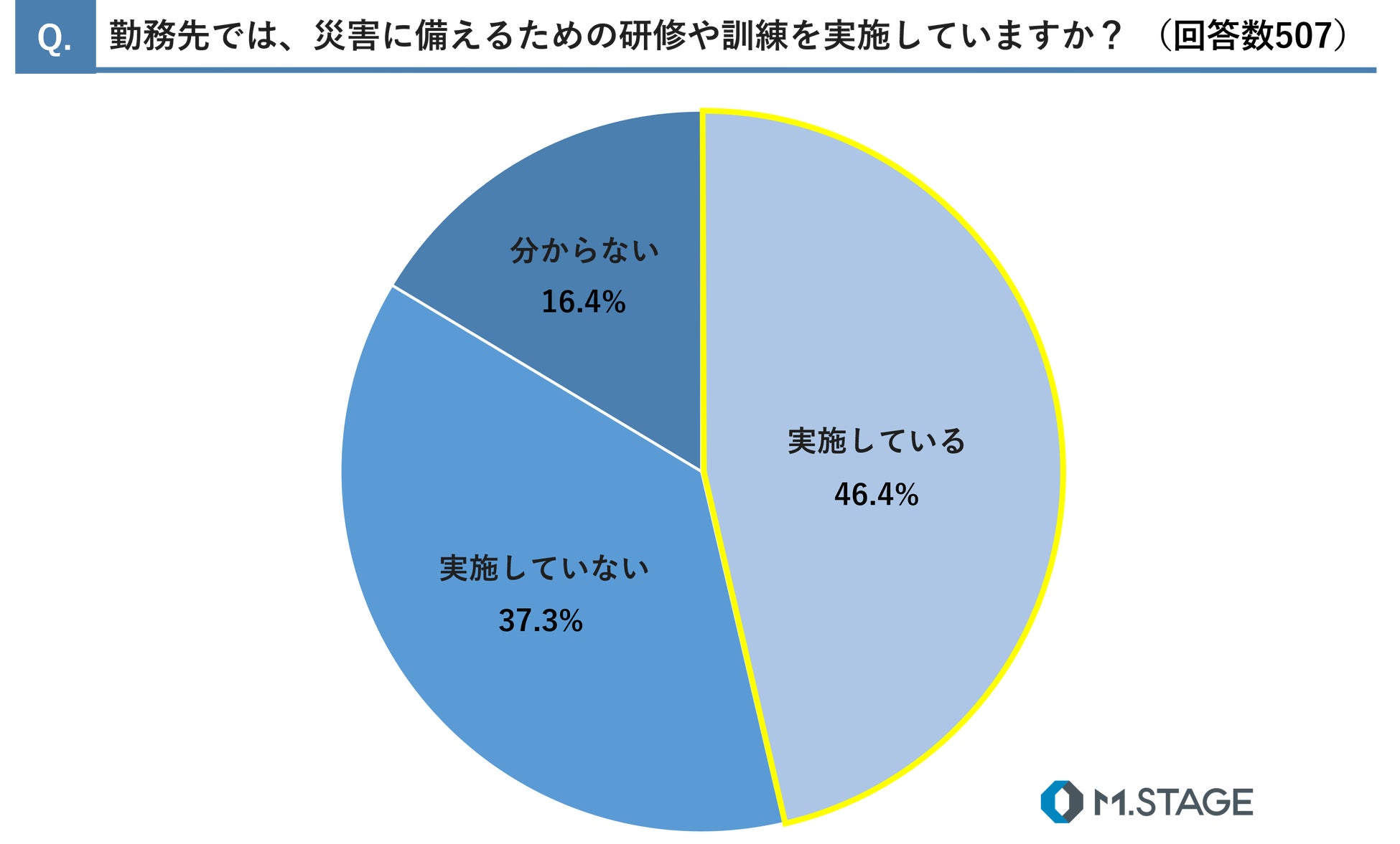 1. 約半数の医師の勤務先で災害に備えるための研修や訓練「実施」