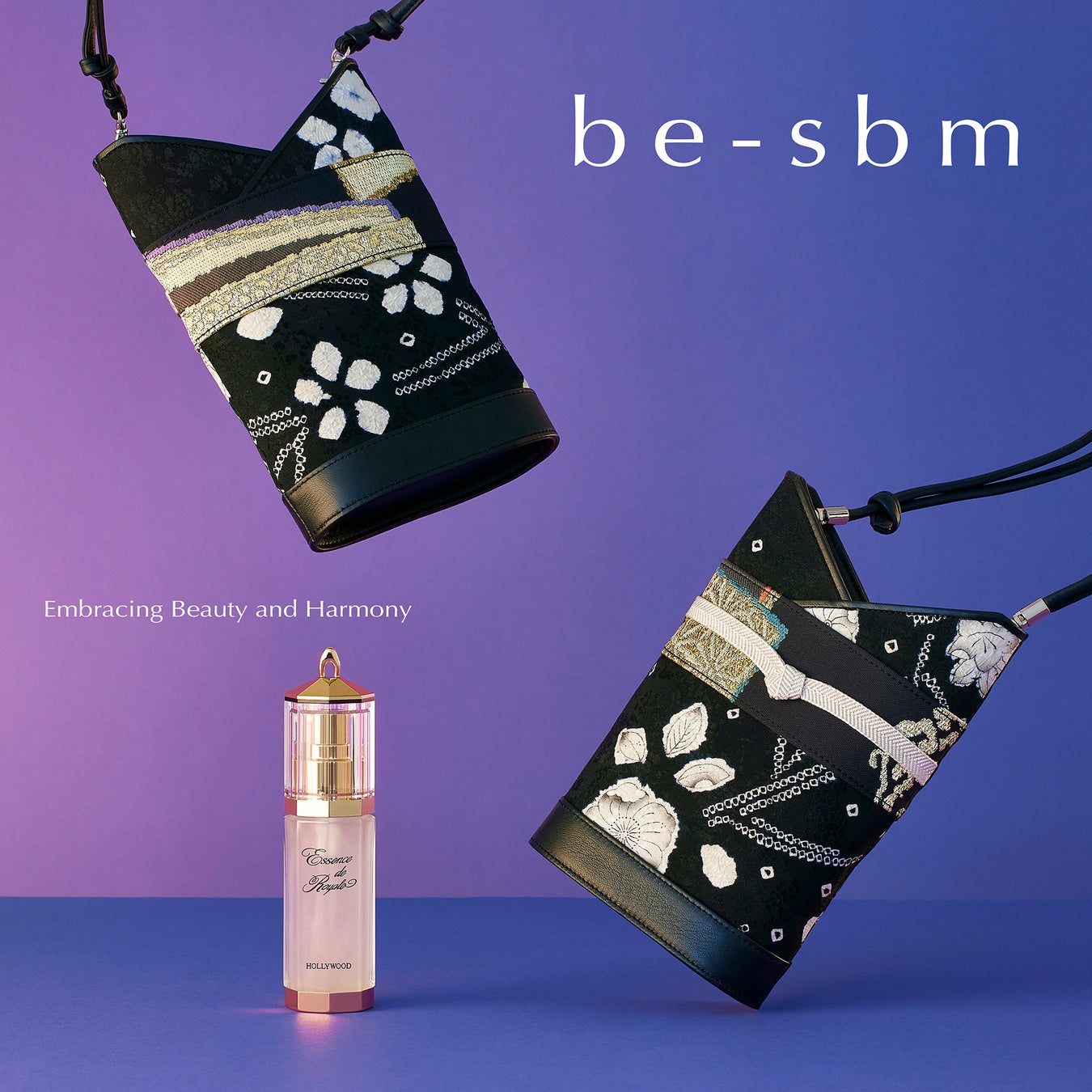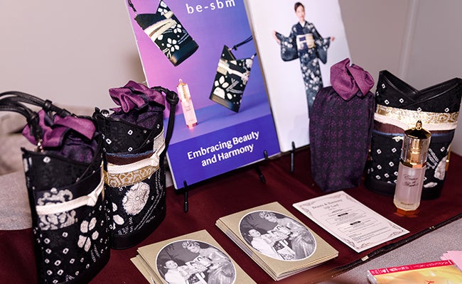 「be-sbm」のデビュープロダクトは、ハリウッドの中でもっともラグジュアリーな美容液、生のローヤルゼリー(保湿成分)をそのままお肌に届ける「エッセンス ド ロイヤル」を、魂が宿る一着の着物を匠のリメイクで唯一無二のショルダーバッグに変身させた、Sustainability、Beauty、Masteryが融合したラグジュアリーな「KIMONO ART BAG」で包んだスペシャルな一品。