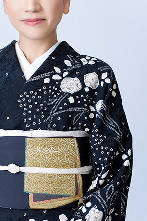 辻が花のシックな絞り染めの着物を使用。