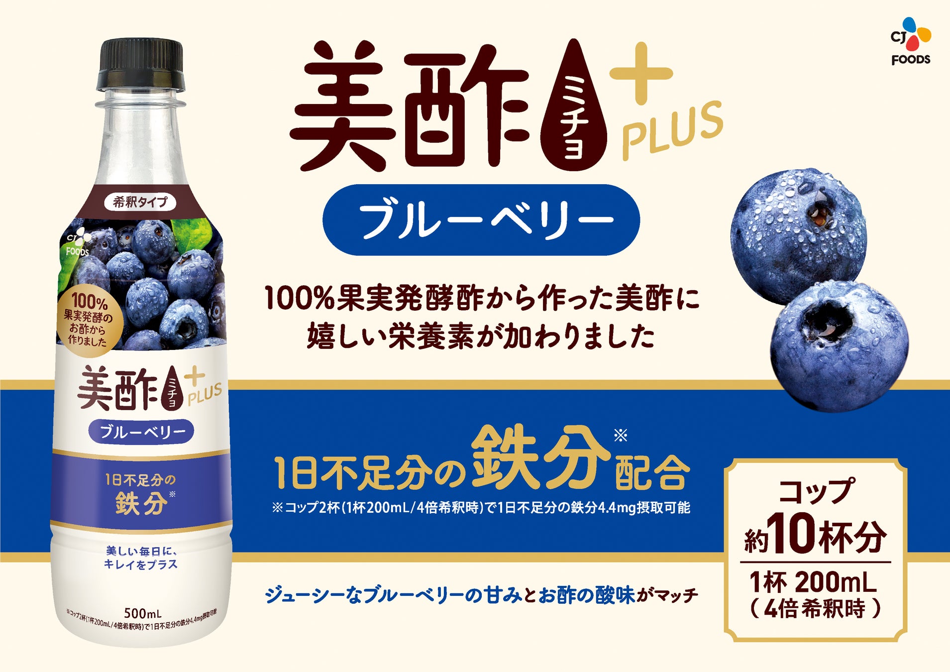 CJ FOODS JAPAN株式会社(本社:東京都港区、代表:林 暻逸)は、「美しい毎日に、果実のお酢」をブランドスローガンに掲げる美酢(ミチョ)から、「美酢プラス ブルーベリー」を2024年3月1日(金)より、全国のスーパーマーケットおよびドラッグストア等で新発売いたしました。