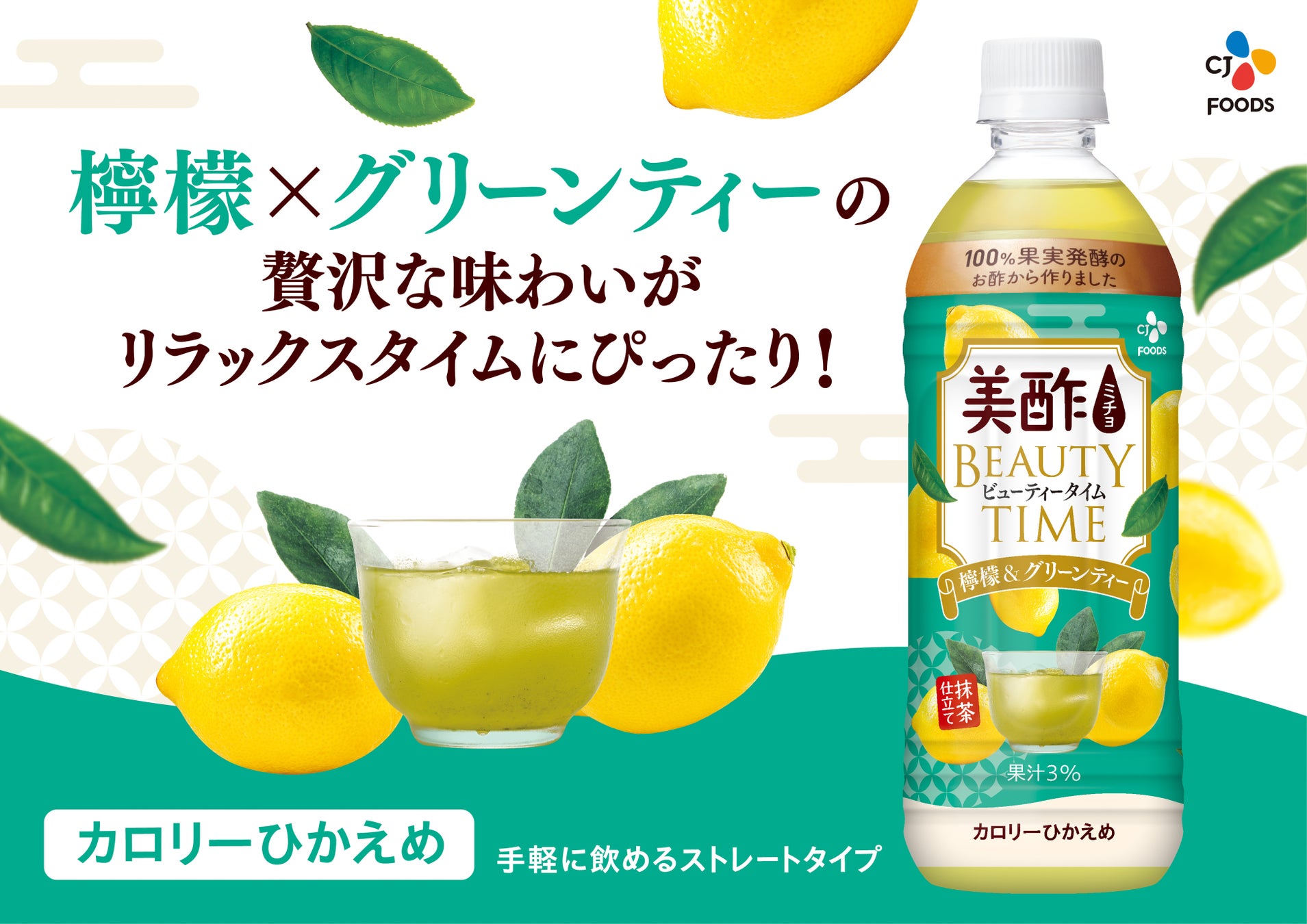 CJ FOODS JAPAN株式会社(本社:東京都港区、代表:林 暻逸)は、希釈せずにいつでも手軽に飲んでいただけるペットボトル入りビネガードリンク「美酢(ミチョ) BEAUTY TIME」から新フレーバー「美酢 BEAUTY TIME 檸檬&グリーンティー」を2024年3月1日(金)より、全国のスーパーマーケットおよびドラッグストア等で新発売いたしました。