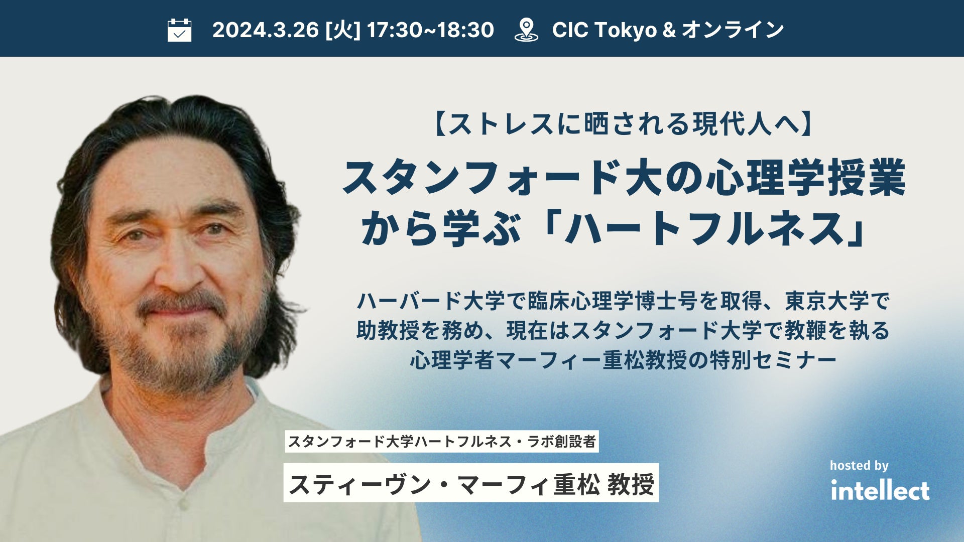世界のトップ大学で教鞭をとる心理学者のスティーブン・マーフィ重松教授の心理学授業を体験したい方は、この機会にぜひご参加ください。