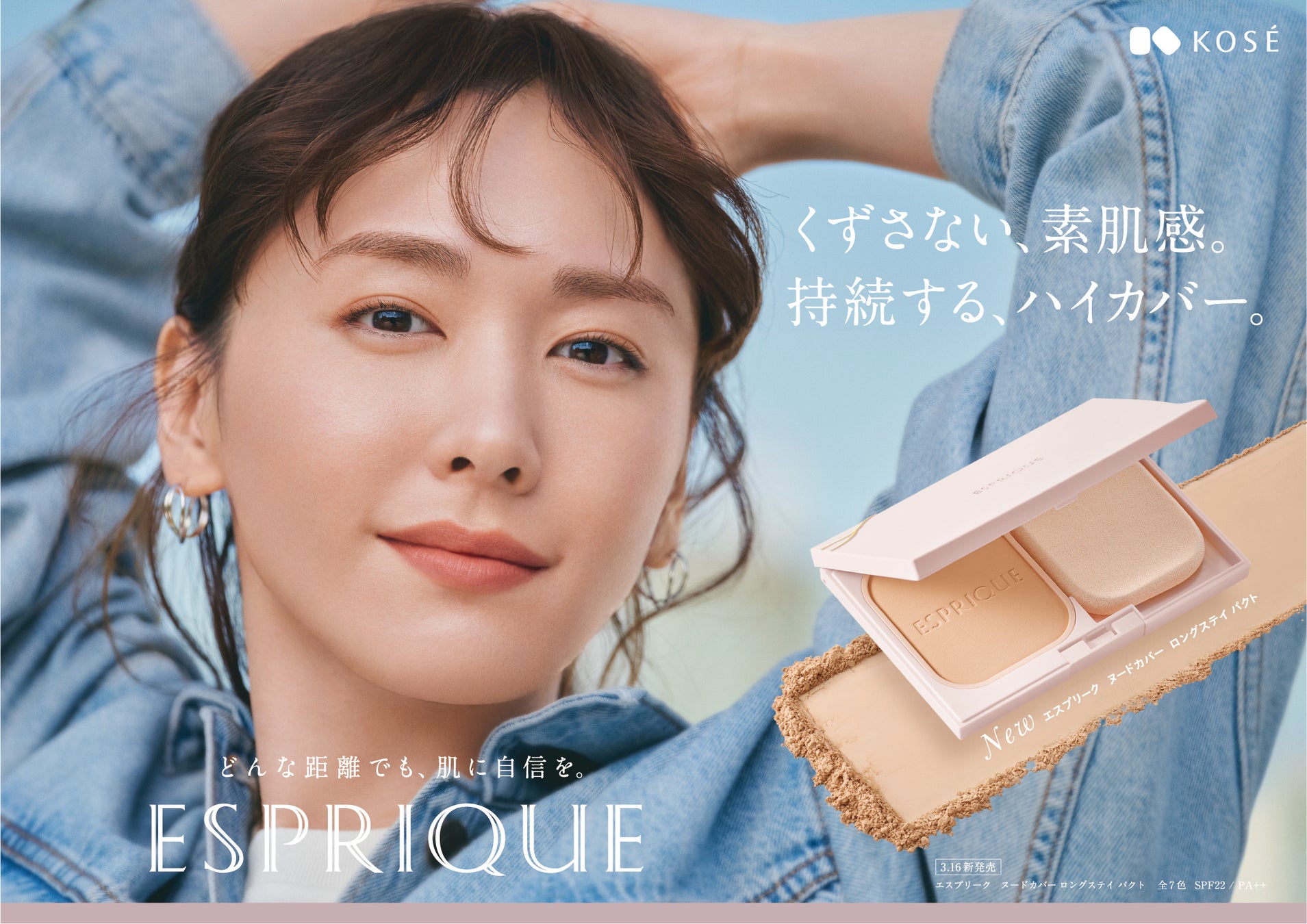 ブランドコンセプトに「どんな日も、もっと私らしく~Effortless Elegant~」を掲げる『エスプリーク』から、毛穴・色ムラなどのあらゆる肌悩みをしっかりカバーするのに、厚塗り感がなく自然な仕上がりが続くパウダーファンデーション「エスプリーク ヌードカバー ロングステイ パクト」が新登場します。ひとぬりで均一にのび広がり、毛穴・色ムラをしっかりカバー。どんなコンディションの肌にもふんわりフィットし、素肌そのものが美しくなったような仕上がりが長時間持続します。