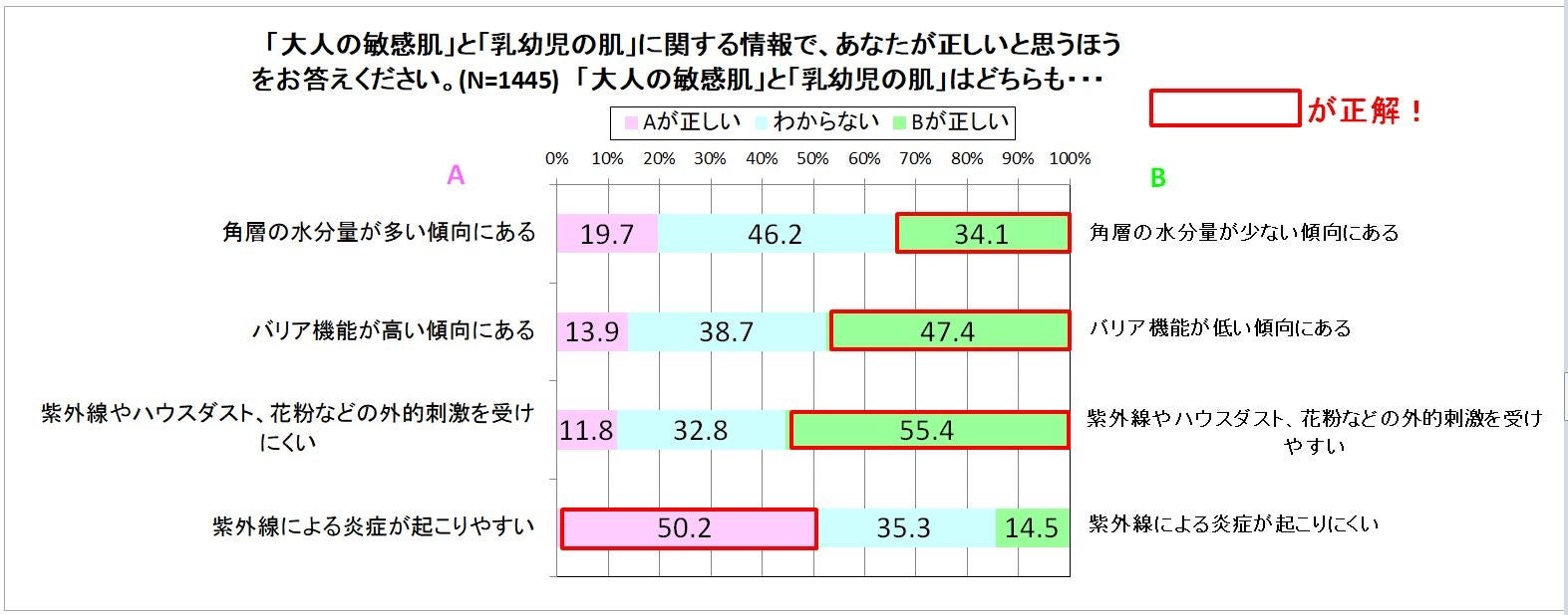 しかし、今回の調査では、その根本要因となる「バリア機能」についての正解率は47.4%と半数以下の結果でした。