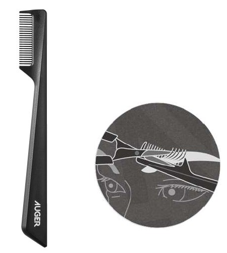 「アイブローコーム」は、握りやすく使いやすい設計になっています。クシの部分はハサミと一緒に使いやすくカットする際に毛を起こしやすい形状になっています。ハンドル後端はAUGERブランドのデザインランゲージである「A」をモチーフにした設計。手触りがよく滑りにくいグリップで、安定して握りやすい持ち手形状になっています。