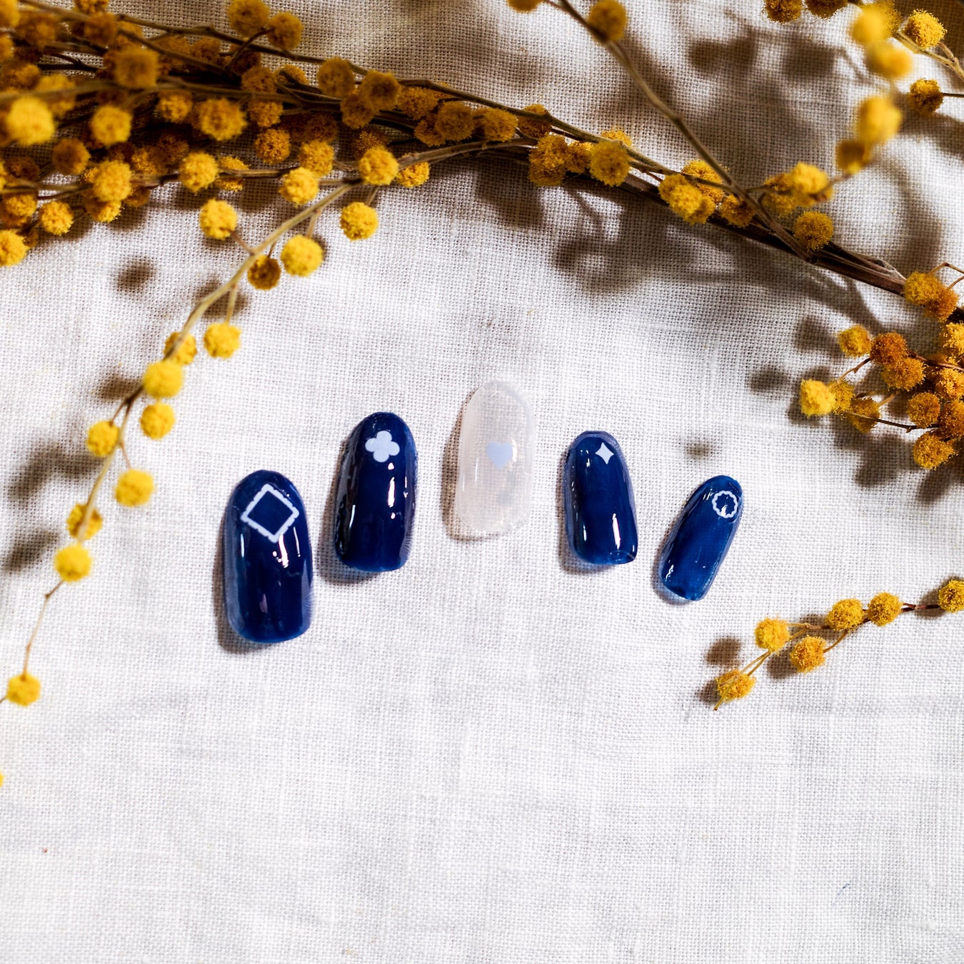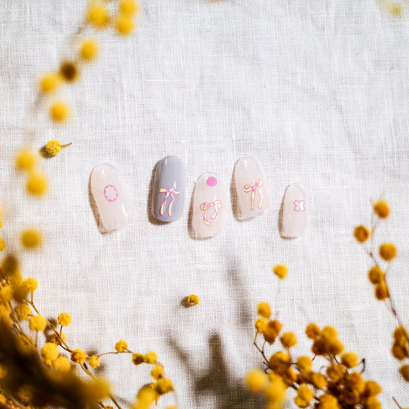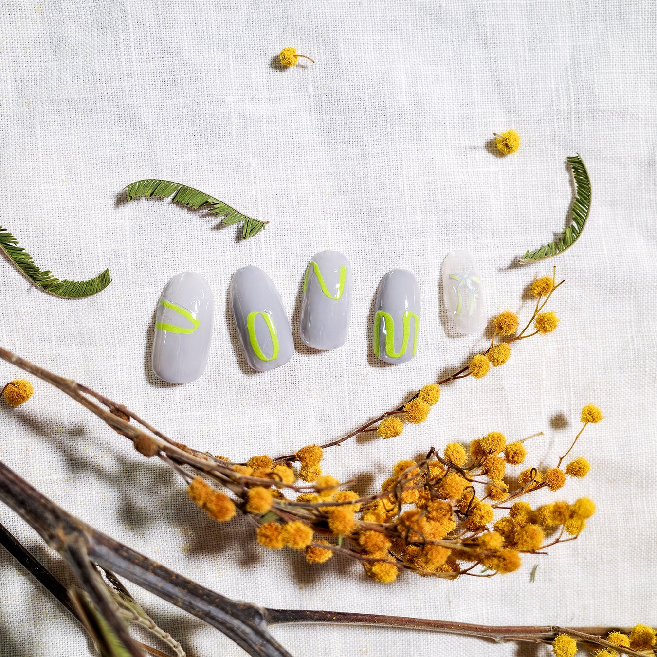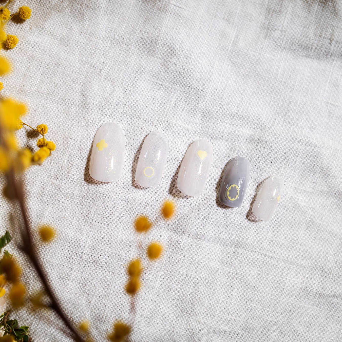 ネイルシール「SHIRUSHI:ミモザ」の使用例を紹介します。
