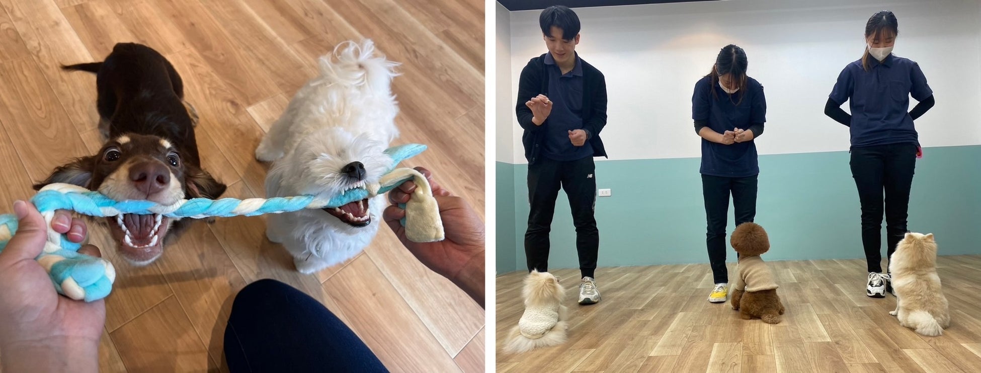 一方ボンパピでは「ひとと犬の想いをつなぐ」を旗印に、ワンちゃんのトレーニングだけでなく飼い主さまへの講習も行っています。どうすれば無駄に吠えずに済むのか、どうすれば公共の場で大人しくしてくれるのか、そのためには自分にどんな知識や技術が足りていないのかなどの「ペットリテラシー」を飼い主さまに学んでいただくことで、デパートや飲食店などの公共施設でもワンちゃんが大人しく振る舞えるようになってもらうのが目的です。