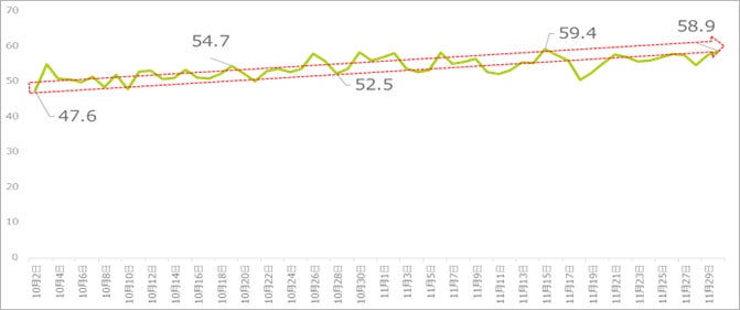 食事登録をした参加者の、あすけん健康度(※)が、スタート時の平均47.6点より平均58.6点に上昇しました。