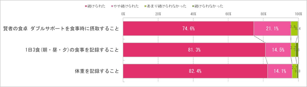 Q1.『あすけん』の利用と「賢者の食卓 ダブルサポート」を食生活に取り入れるモニターイベントについて、無理なく続けることができましたか?
