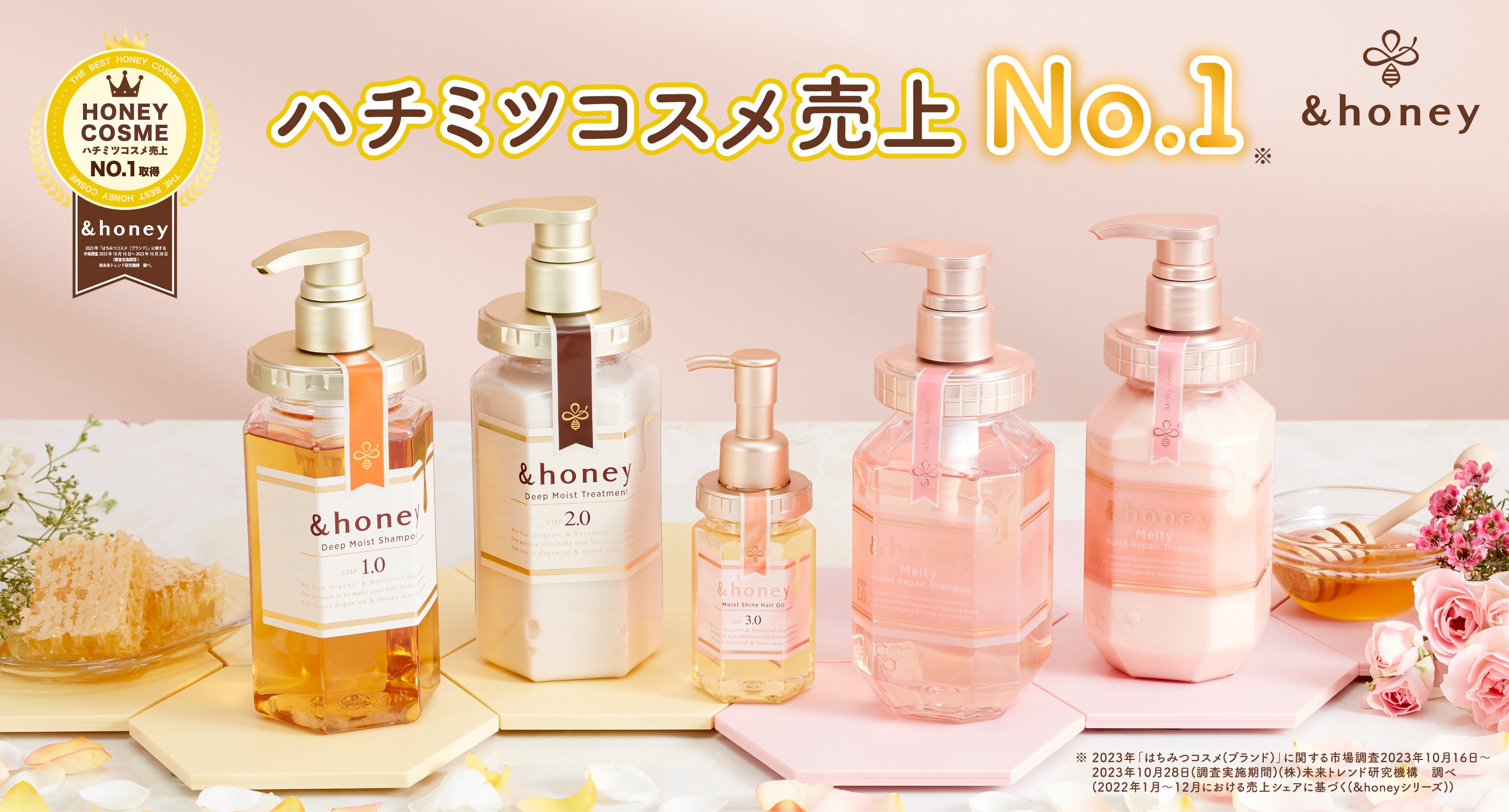 発売5年で累計出荷数7200万個突破の「&honey(アンドハニー)」が「ハチミツコスメ(ブランド)」売上シェアNo.1を取得※