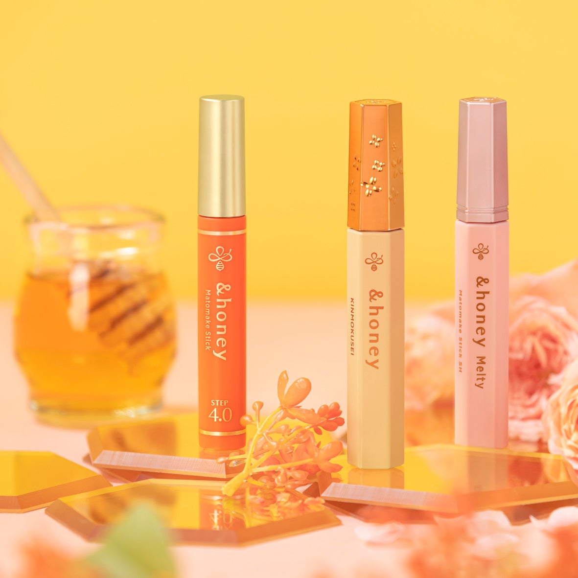 固めすぎずナチュラルにキープできる『&honey マトメイクスティック4.0』、うねり髪もまとめてしっかりスタイルをキープできる『&honey メルティ マトメイクスティック スーパーホールド4.0』、シリーズ史上最も香り持続力が高い※『&honey キンモクセイ マトメイクスティック4.0』。