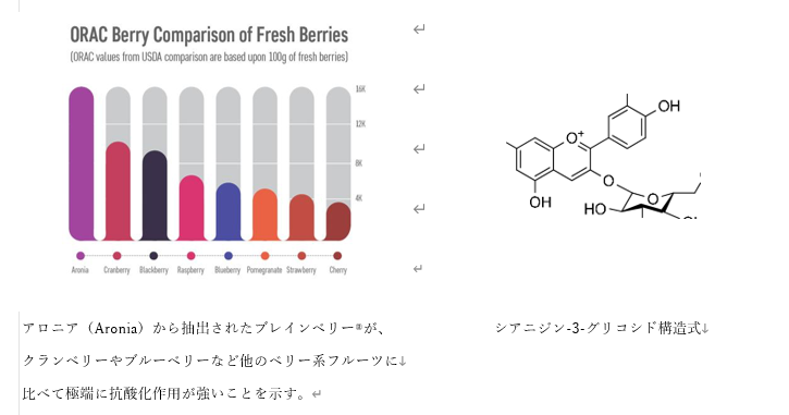 「ブレインベリー®」は北アメリカ大陸の東部原産のバラ科の植物アロニアから抽出され、強力な抗酸化作用や抗炎症作用を含む多岐にわたる利点を誇ります。また、「ブレインベリー®」の独特の成分、シアニジン-3-グリコシドが65%も含まれるアントシアニンは、通過しにくい脳や網膜の血管壁を通過して、神経組織に到達し、酸化ストレスを強力に抑制することができることが研究によって示されています(下記グラフ参照)。 WIN VISION Premiumは、この「ブレインベリー®」を1日あたり100mgと、贅沢に配合させているのが特徴です。(推奨の下限は65mg/日)。