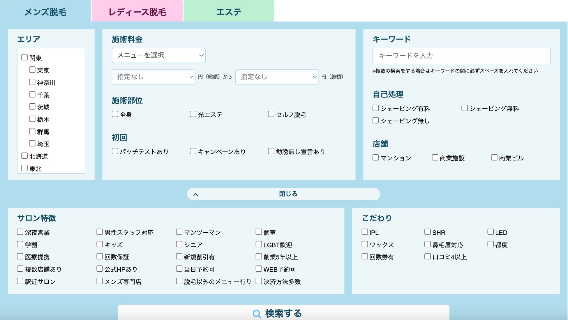脱毛サロンとして検索しても出てこなかったあのサロンも掲載!