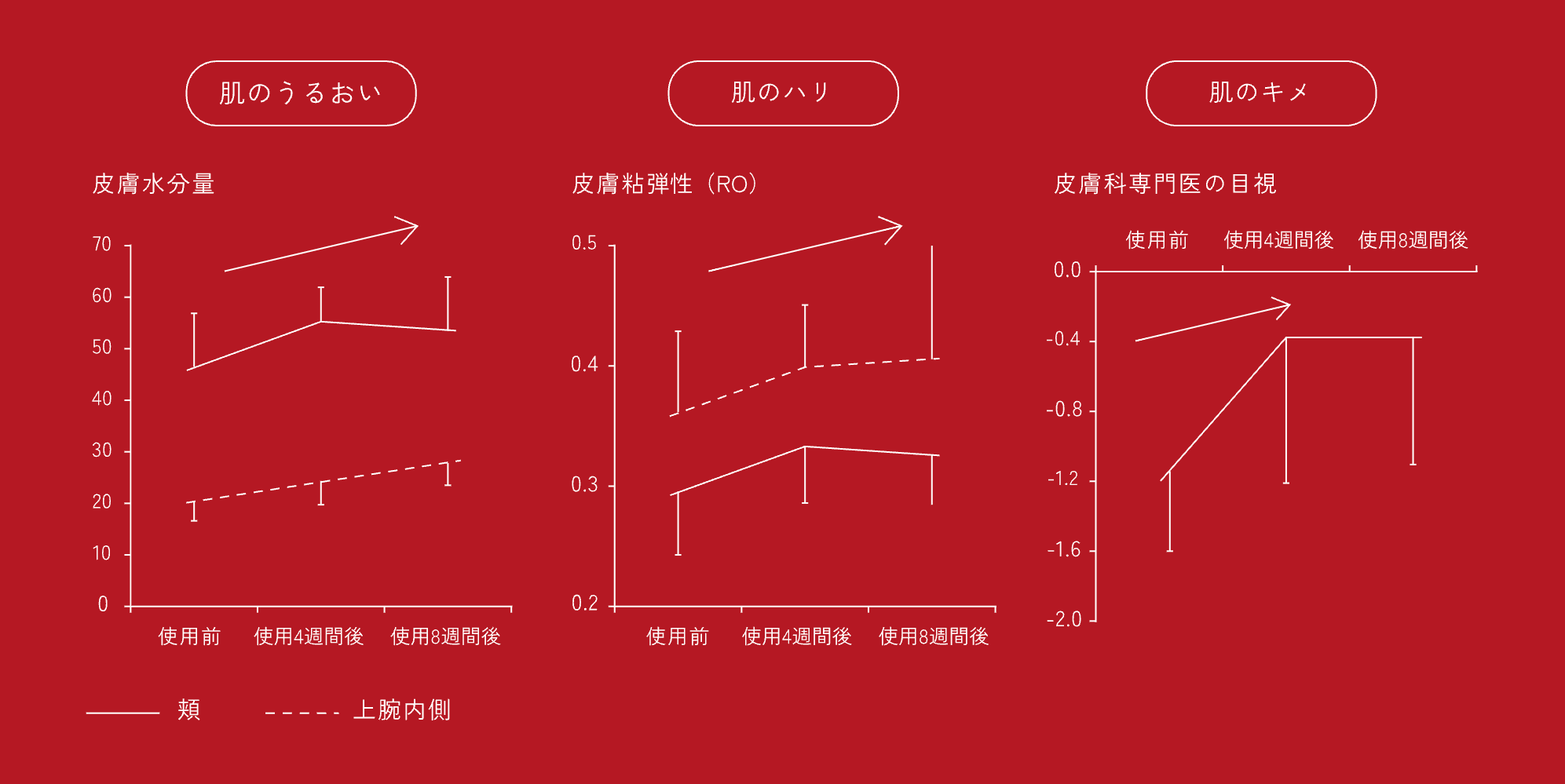 nishikawaの研究機関である日本睡眠科学研究所と、同志社大学大学院生命医科学研究科/アンチエイジングリサーチセンター 米井嘉一教授との共同研究によって、睡眠時間は変えずに、睡眠の質を上げることでどれほど効果がみられるかを検証しました。結果、良質な寝具を使用して睡眠の質を改善することで、肌のうるおいやハリ、キメの数値が改善しました。