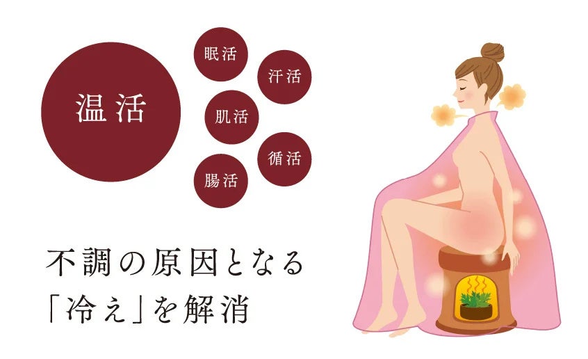 すべての女性が本来持っている自活力を引き出し、心身を整える。+1℃で、強くしなやかな「健康」と「美しさ」をサポートします。蒸気で体を芯からあたためる体質改善をぜひ温座で体験してください。