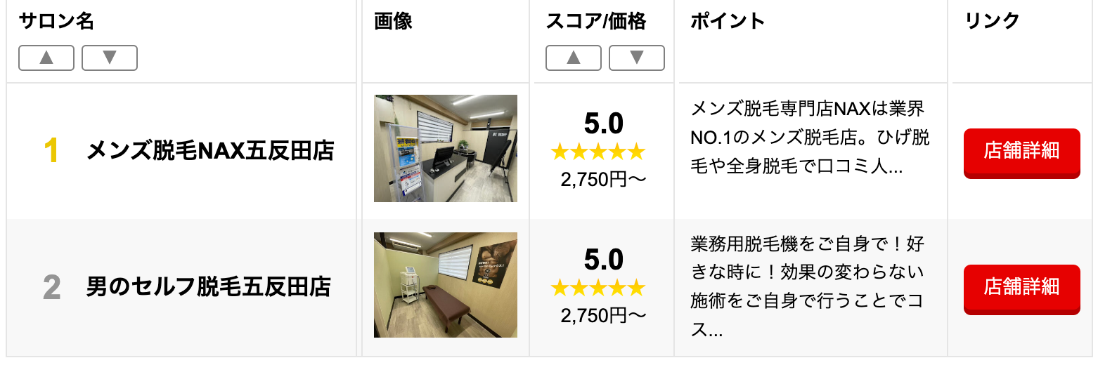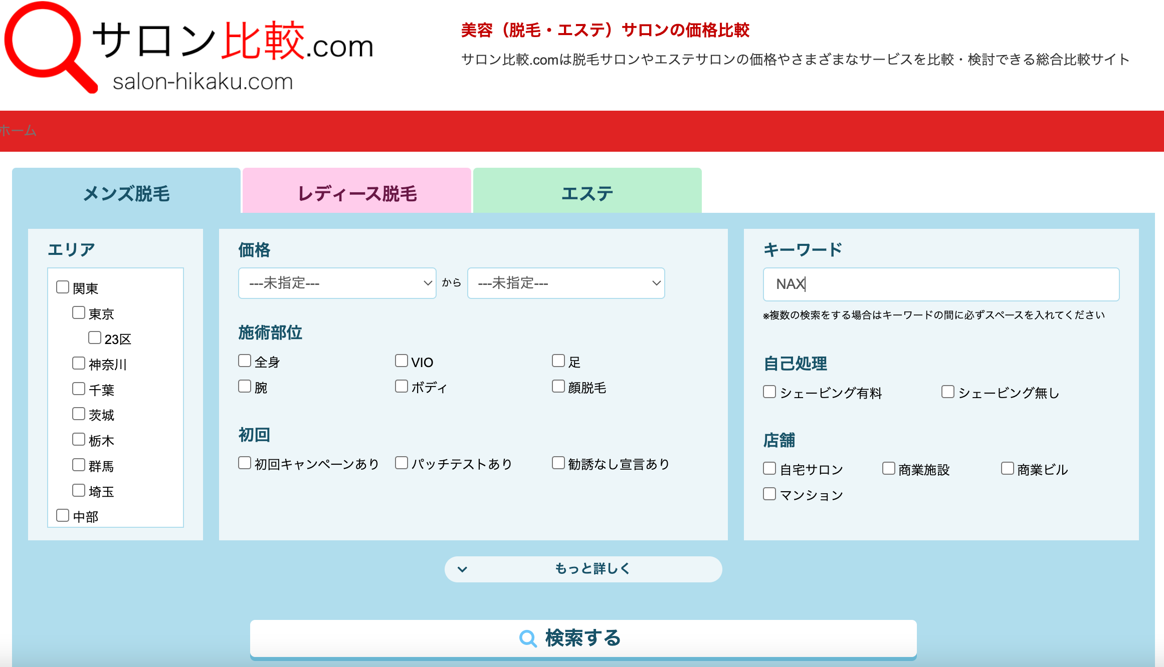 メンズNAX検索で店舗情報や提供価格の詳細を確認!