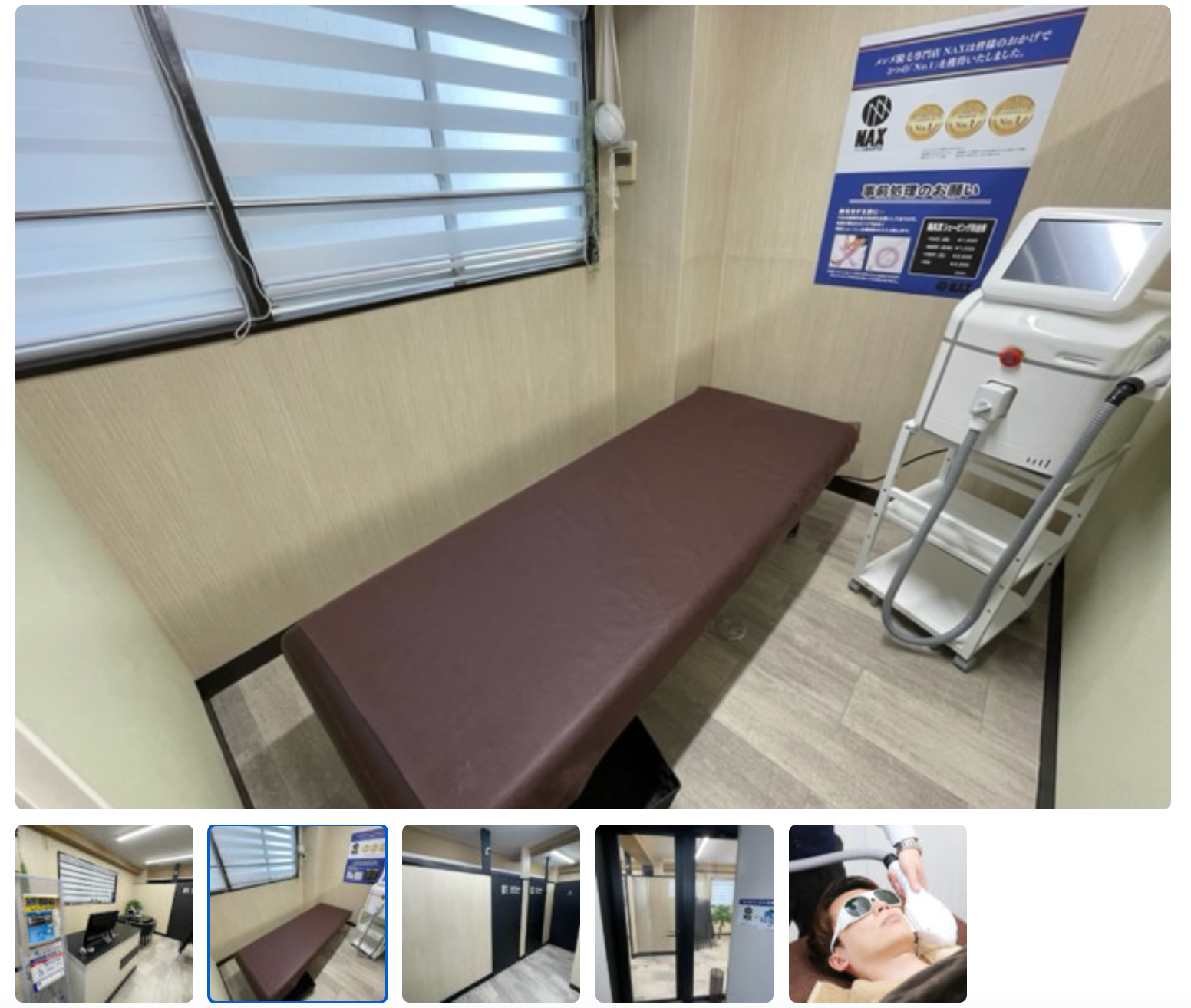 画像は施術ルーム2部屋、セルフ脱毛2部屋、計4部屋完備のNAX五反田店。