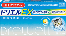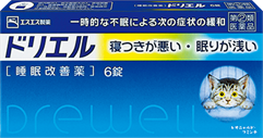 ドリエル、ドリエルEXは、全国の薬局・ドラッグストアでご購入いただける睡眠改善薬です。「寝つきが悪い」、「眠りが浅い」といった多くの現代人の抱える一時的な不眠症状※2を緩和することで、生活全体を充実させQOL(Quality of life:生活の質)の向上に貢献いたします。病院で処方される睡眠薬(ベンゾジアゼピン系など)とは異なり、ドリエル、ドリエルEXはOTC医薬品のかぜ薬や鼻炎薬などに含まれる抗ヒスタミン剤の一種、ジフェンヒドラミン塩酸塩を配合しており、その作用で一時的な不眠症状を緩和します。