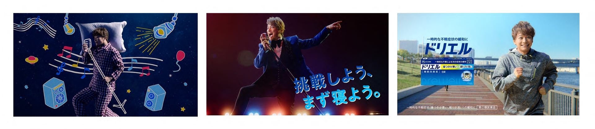 今回の新TV-CMは、プロジェクト名から「挑戦しよう、まず寝よう。」をタイトルに、良い睡眠がもたらすベネフィットを描いています。新CMキャラクターには、歌手、俳優、アーティストなど、精力的かつマルチに挑戦し活躍の幅を広げる姿がキャッチコピー「挑戦しよう、まず寝よう。」を体現していることから、香取慎吾さんを起用。睡眠が身体と心に力を与え、その先の活動の質向上をサポートし毎日を充実させてくれることを、香取さんの穏やかな寝顔から、活動を楽しむはつらつとした姿や表情で表現しています。良い睡眠から期待できる、香取さんのいきいきとした表情にもご注目ください。