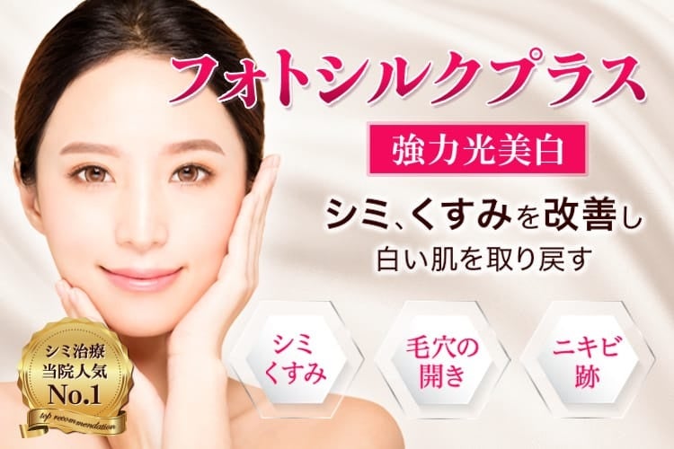 当院では、シミ・そばかす・くすみに効果のある施術メニュー「フォトシルクプラス」をご用意しております。