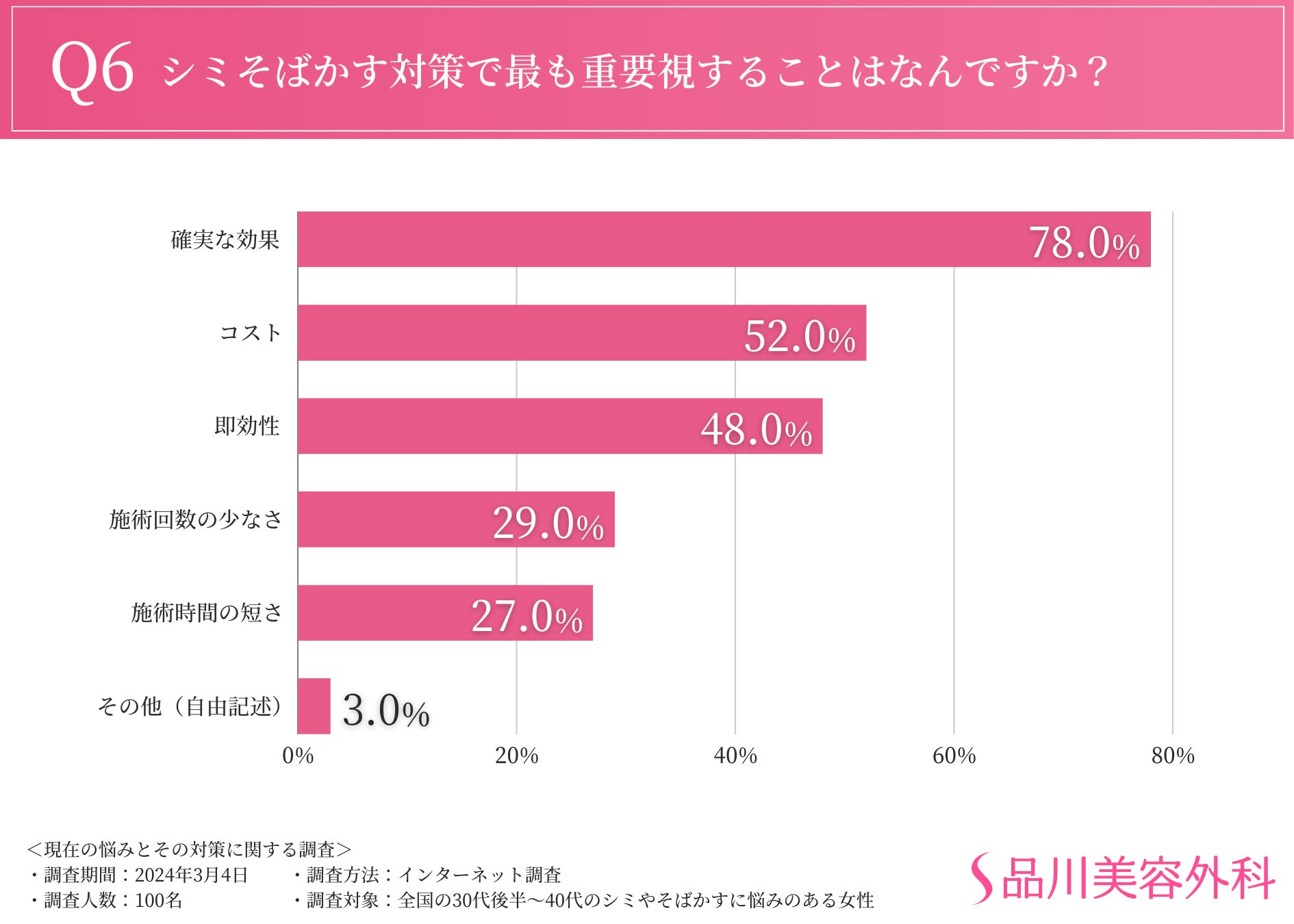 伺ったところ、「確実な効果(78.0%)」「コスト(52.0%)」「即効性(48.0%)」という結果となりました。