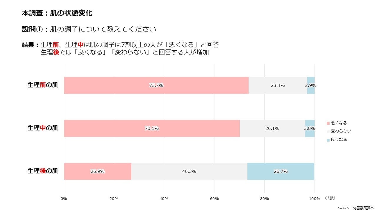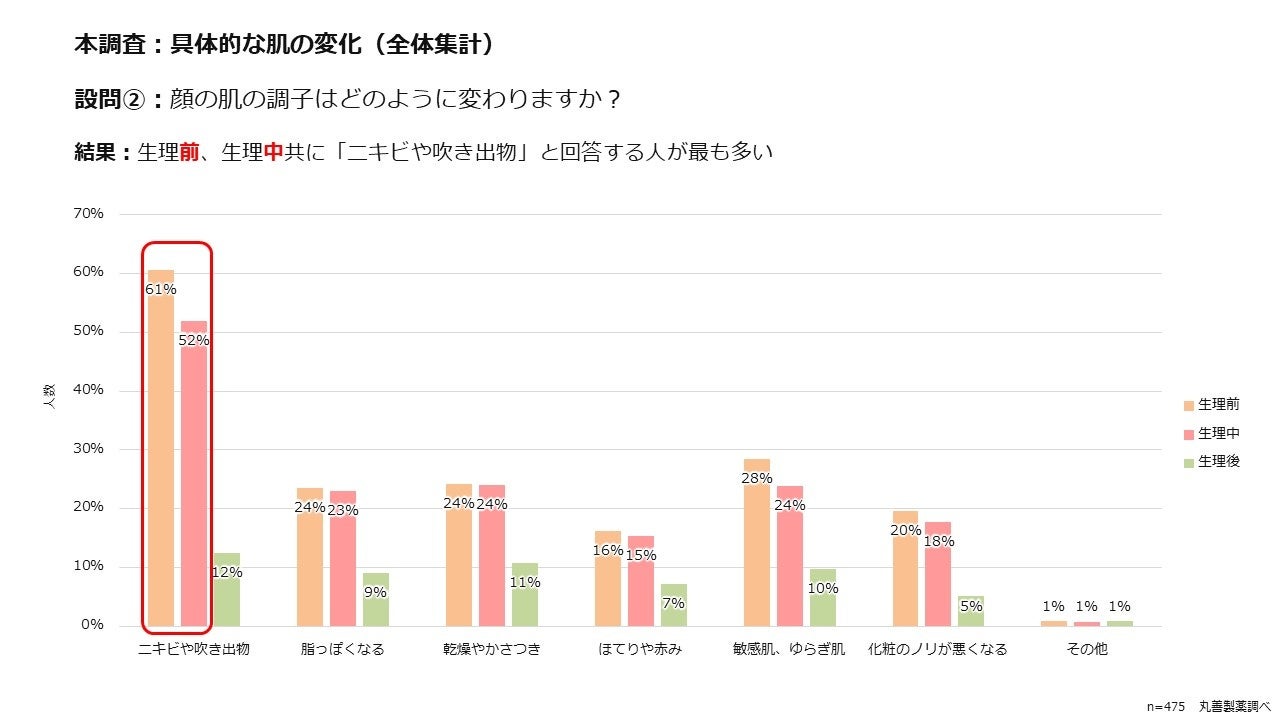 • 本調査対象者:一次調査対象者のうち、生理時に「肌荒れやニキビなどの顔の肌不調」で悩んだ経験のある方 475名