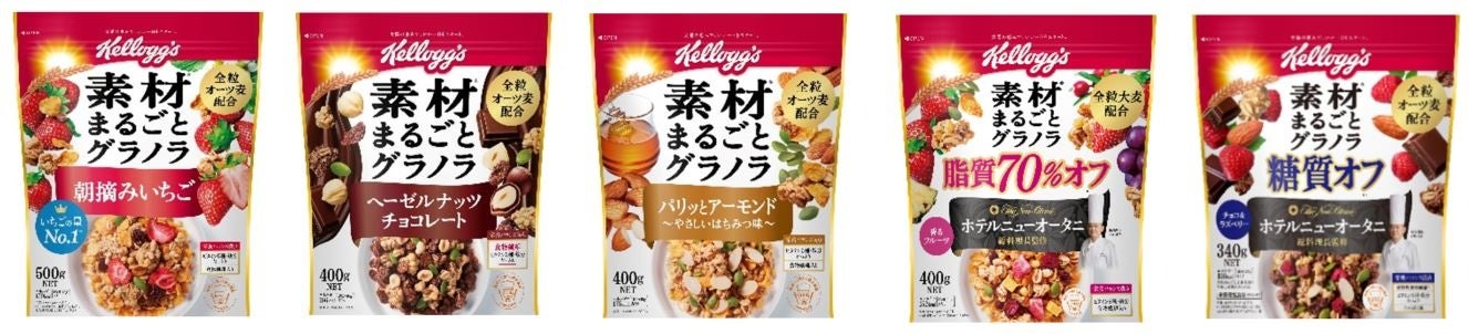 日本ケロッグ合同会社(本社:東京都千代田区、代表職務執行者社長:井上ゆかり)は、日本ケロッグ 素材まるごとグラノラシリーズ最大の脂質オフ率を実現した「素材まるごとグラノラ 脂質70%オフ」を 3月25日(月)より新発売します。「素材まるごとグラノラ 脂質ハーフ」に改良を重ね、1食あたりの脂質が0.8gと、脂質70%カット*¹を実現しました。また、新製品発売に伴って、「素材まるごとグラノラ 糖質オフ」のパッケージもリニューアルします。どちらもホテルニューオータニ監修の味わいで、脂質・糖質が気になるけれど、おいしさを我慢したくない方にぴったりの製品です。