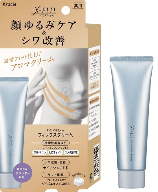 そこで「X-FIT!」は、肌表面のケアだけでは改善できない「顔のゆるみ」と「シワ」に、マッサージをしながら顔筋をほぐして内側からもアプローチできる商品で大人の肌悩みに対応します。