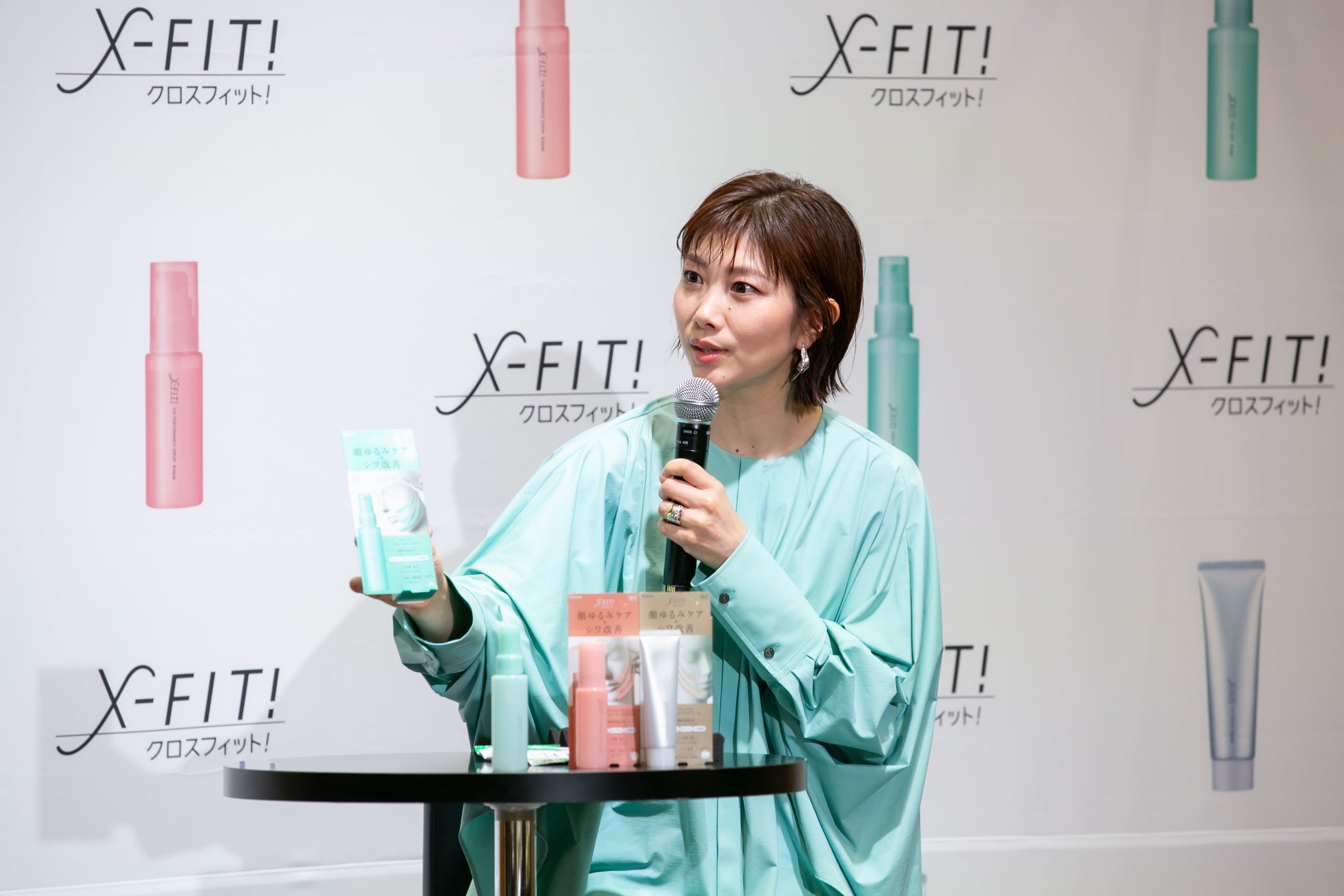 イベントでは、「X-FIT!」の開発担当者によるシリーズの開発背景や新商品のご紹介に加え、元バトミントン日本代表選手であり、2児のママであるタレントの潮田玲子さんをお招きし、トークセッションを実施。商品の感想に加え、元トップアスリートならではのトレーニング事情や、年齢を重ねても美を保つ秘訣などをお話しいただきました。