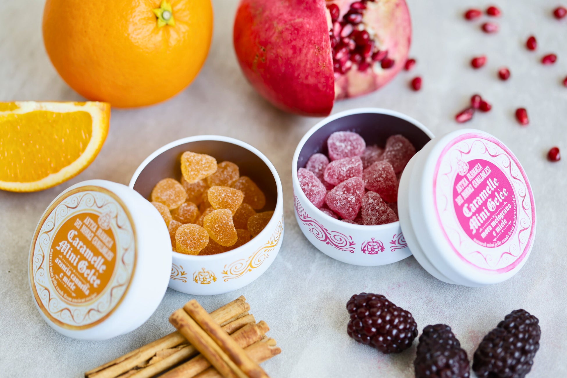 世界最古の修道院薬局カマルドリから、はちみつとフルーツで作られた小さなお菓子「カマルドリの修道院グミ」が登場します。「カマルドリの修道院キャンディ」と同じくボンボニエーラの缶入りで、持ち運びにも便利なサイズです
