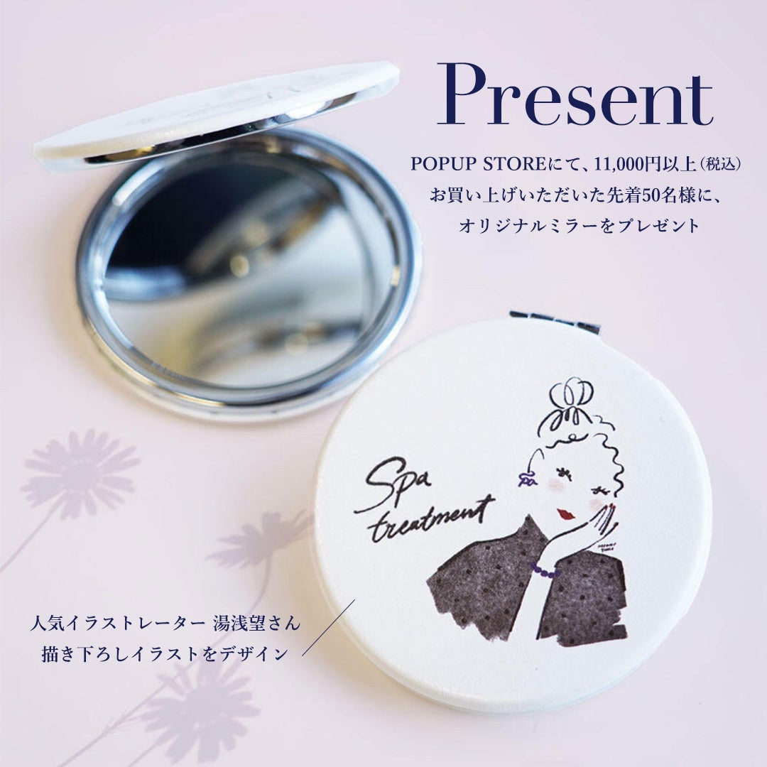 人気のイラストレーター 湯浅望さん描き下ろしのフェミニンな女性がデザインされたオリジナルコンパクトミラーをプレゼントいたします。