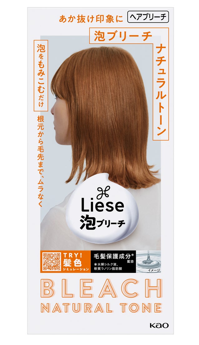 同時に、ハイブリーチには抵抗があるものの、セルフカラーでも明るい発色を求める方に向けて、『リーゼ 泡ブリーチ ナチュラルトーン』を新発売します。パウダーレス*1 のブリーチ剤で、髪の色素をほんのりと、自然なトーンに脱色。カラー前のベースづくりに使用することで、ナチュラルカラーがより明るい発色に仕上がり、やわらかくあか抜けた印象になります。また、濃密泡タイプで、セルフカラー初心者でも、もみこむだけで簡単に、気になる根元から毛先まで、ムラなくキレイに脱色できます。毛髪保護成分*2 配合。ブリーチ毛も指通りなめらかなしっとり質感に。