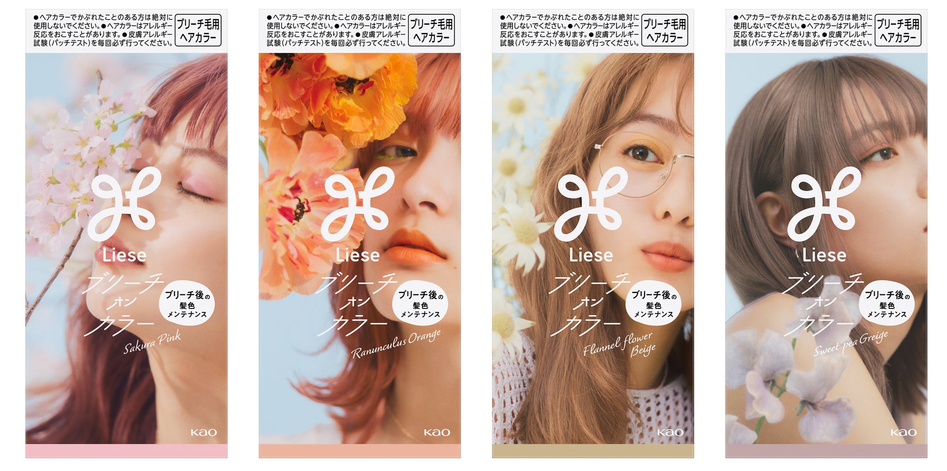 花王株式会社のヘアコスメティクスブランド「リーゼ」は、ブリーチ後の色落ち・黄みが気になる方に向け、髪色メンテナンスができる『リーゼ ブリーチオンカラー』を、2024年3月30日に新発売します。ブリーチ毛の黄みを抑え、色落ちまで楽しめるやわらかな透明感のある「さくらピンク」、「ラナンキュラスオレンジ」、「フランネルフラワーベージュ」、「スイートピーグレージュ」の4色をラインアップ。色落ちしたブリーチヘアでも、繊細でやわらかなニュアンスを長く楽しめる新提案です。