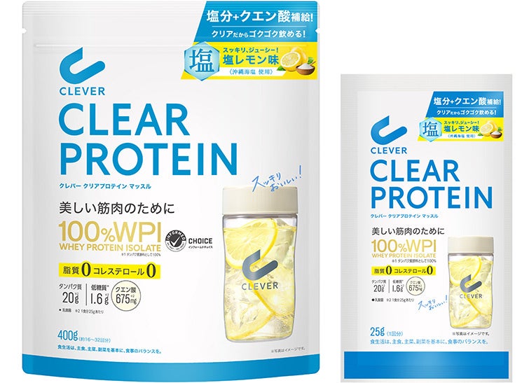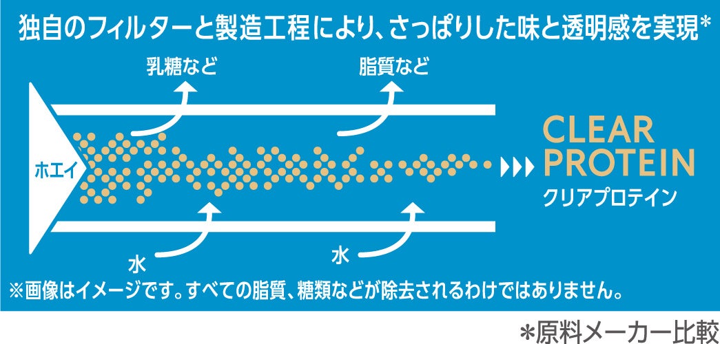 「クレバークリアプロテイン」のWPI(ホエイプロテインアイソレート)は、独自のプロセスにより、今まで実現しにくかった突出した透明性とスッキリと心地よい新感覚の飲みごたえを実感いただけるプロテインです。