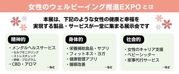 女性のウェルビーイング推進EXPO(旧:女性のメンタルヘルスケアEXPO) 会期:2024年10月17日(木)~19日(土) 会場:東京ビッグサイト