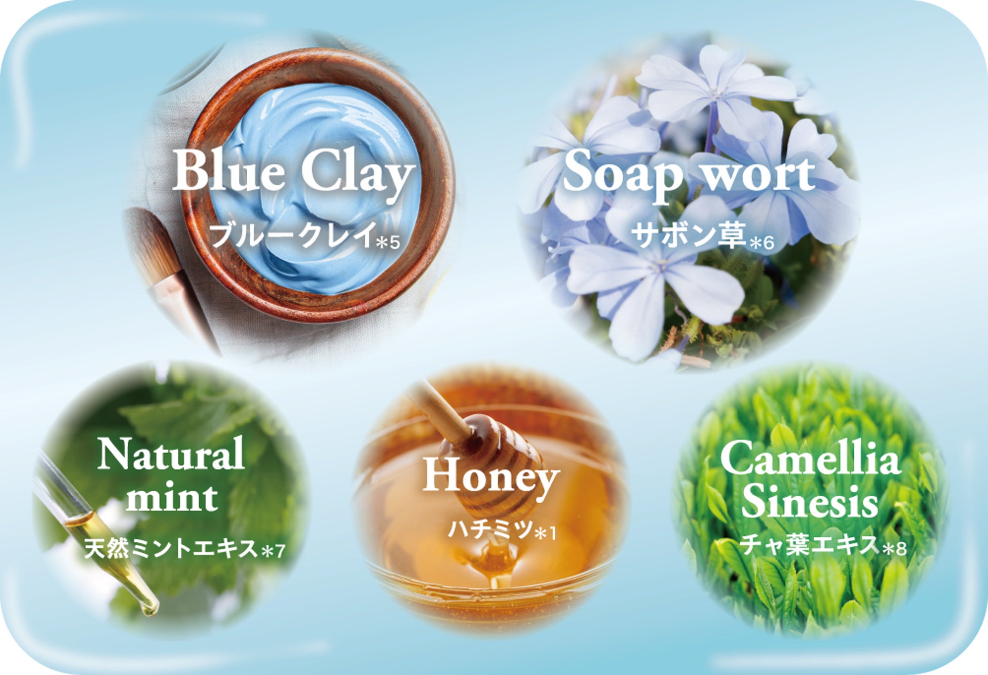 製品の90%以上をハチミツ*1やブルークレイ*5などの保湿&ニオイケア※1成分*4※3で構成。