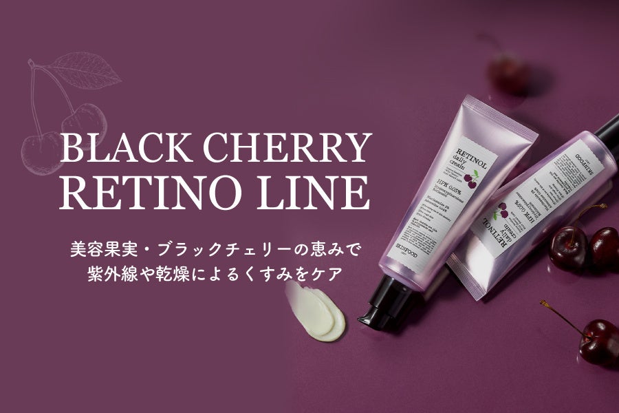 スキンフードが厳選したポーランド産ブラックチェリー(*1)と、韓国で注目されている成分であるレチノール(*2)をW配合し、若々しく健やかな肌に導きます。