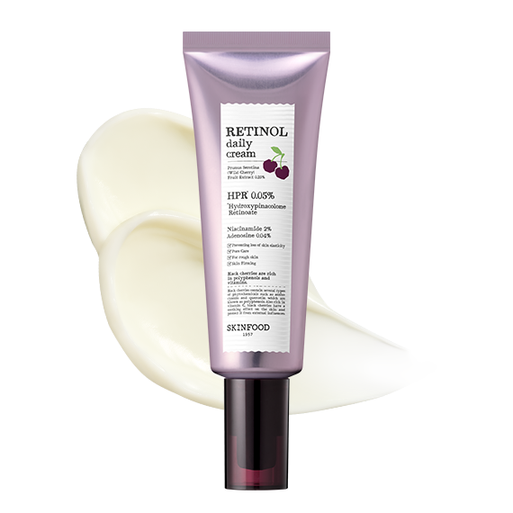 スキンフードが厳選したポーランド産ブラックチェリー(*1)と、韓国で注目されている成分であるレチノール(*2)をW配合し、若々しく健やかな肌に導きます。